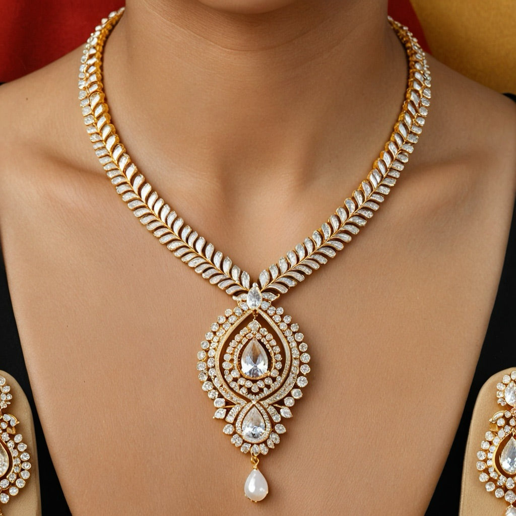 Discover the brilliance of our American Diamond Collection, featuring exquisitely crafted jewellery that offers the perfect blend of luxury and affordability. Designed to mimic the sparkle of real diamonds, our collection is perfect for any weddings, parties and any special occasions.